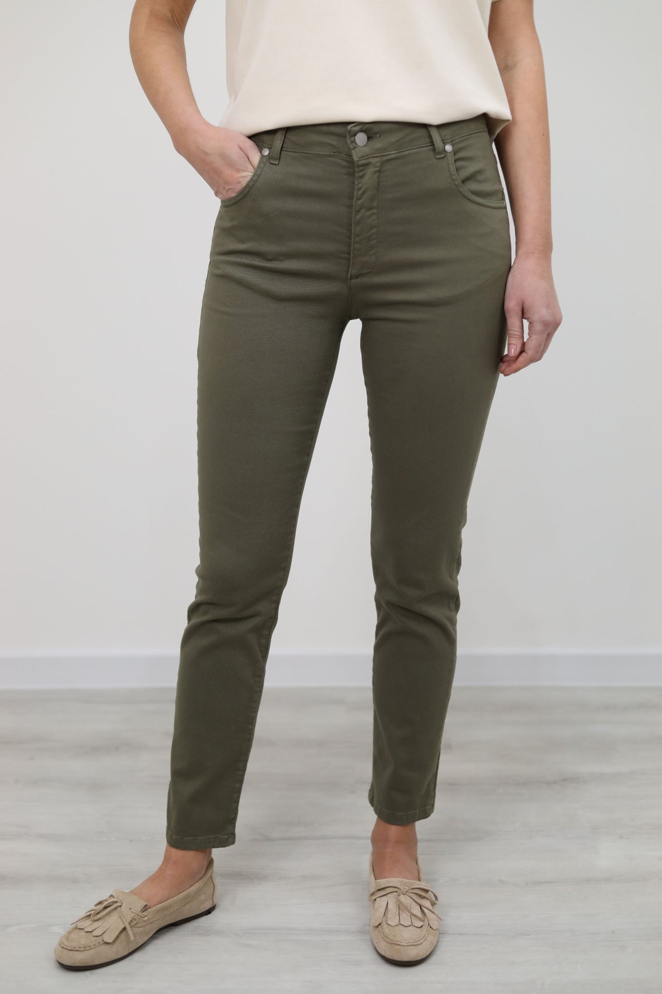 Jeans skinny fit a cinque tasche realizzato in denim. Modello a vita alta con chiusura frontale tramite zip e bottone e passanti in vita. Gamba aderente lungo tutta la lunghezza. Tessuto confortevole e elasticizzato per una vestibilità ottimale.