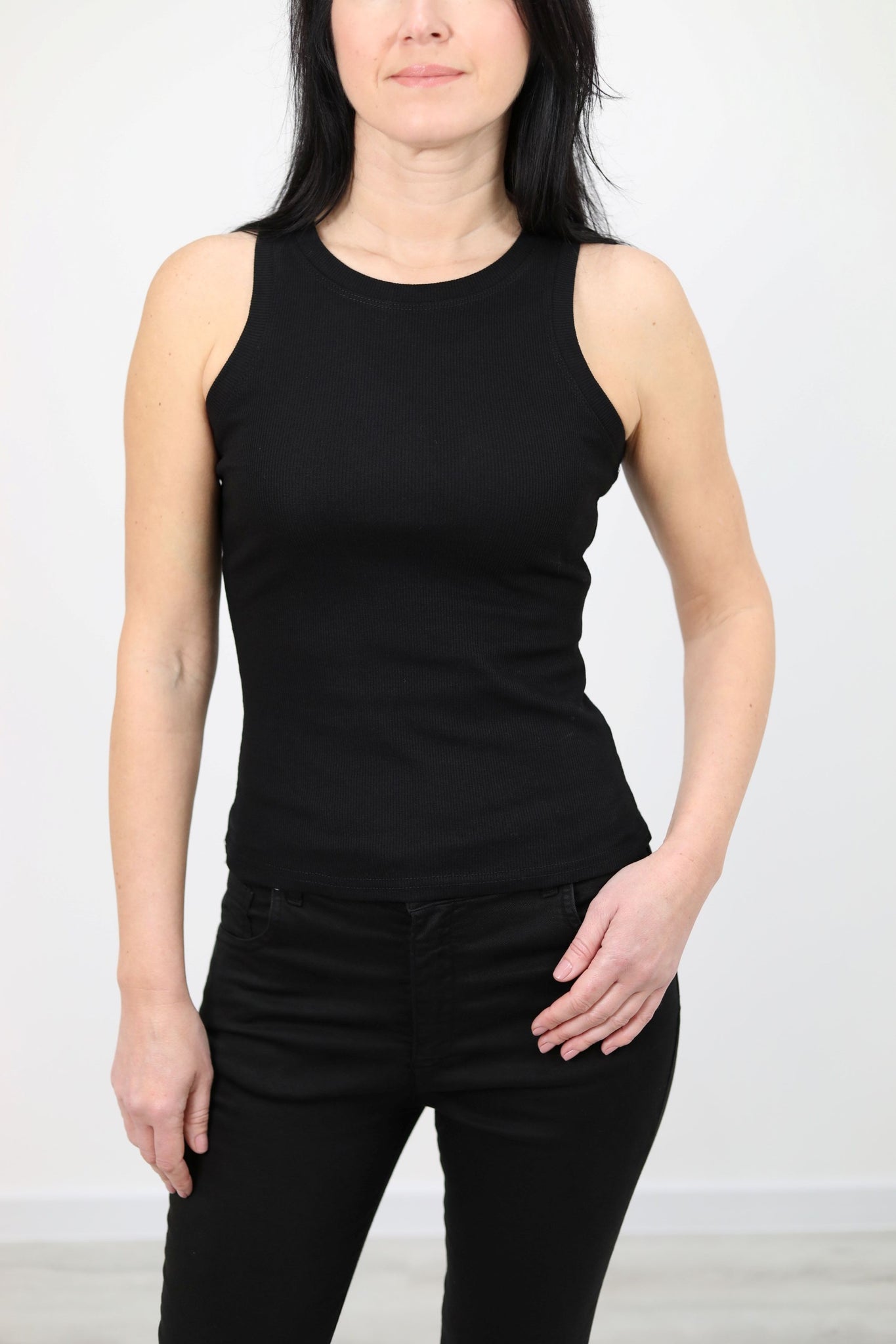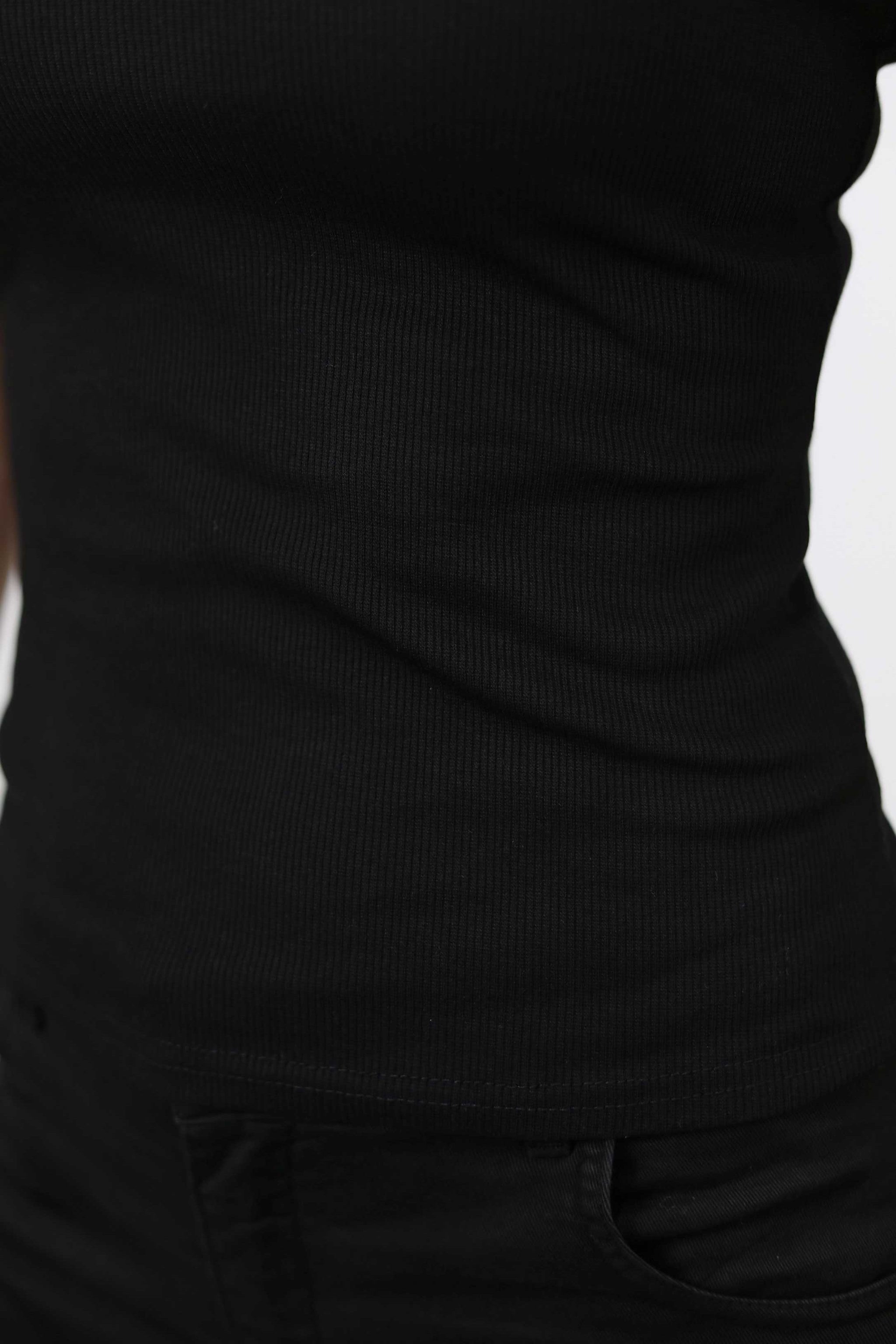 Canotta aderente a costine con scollo rotondo.