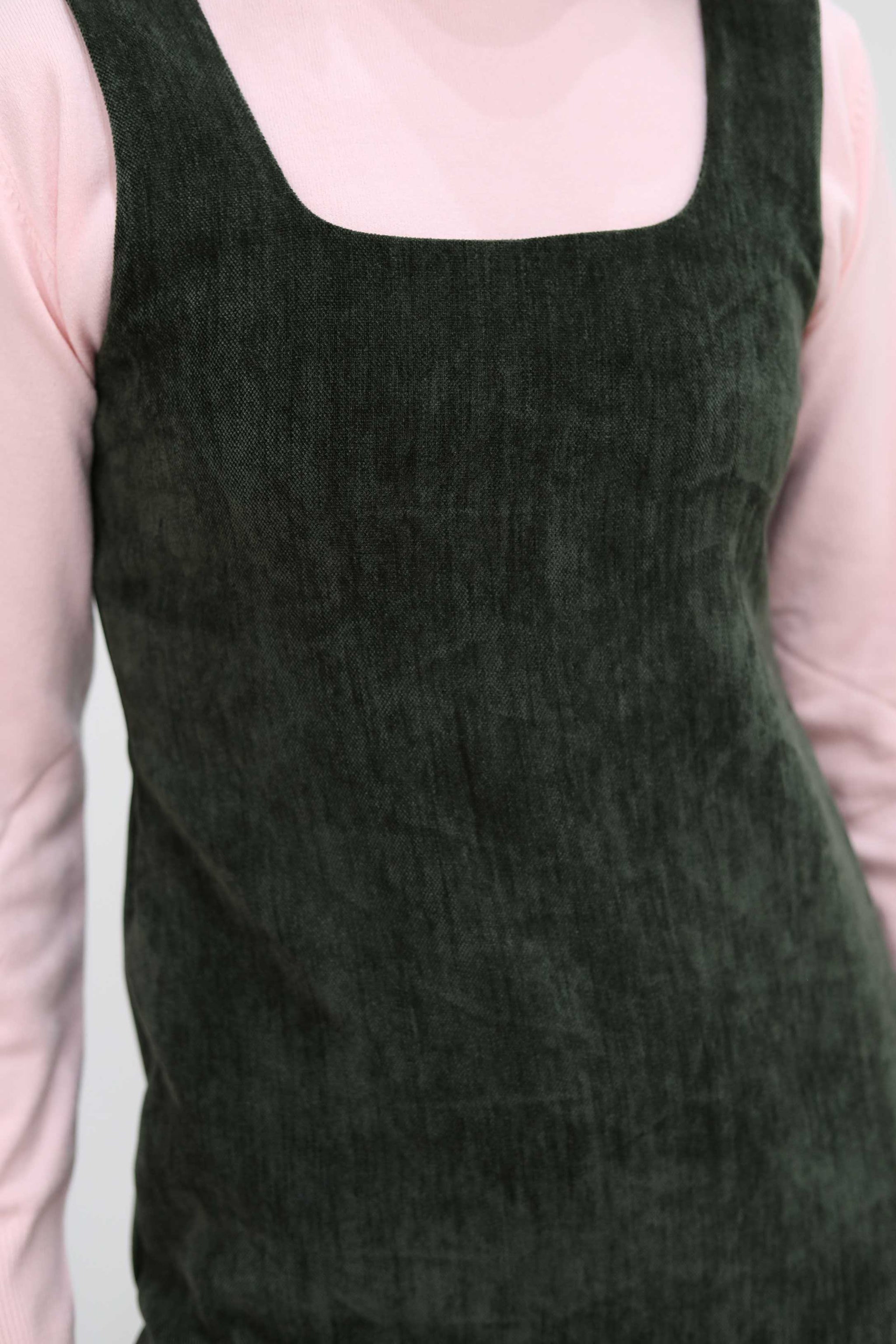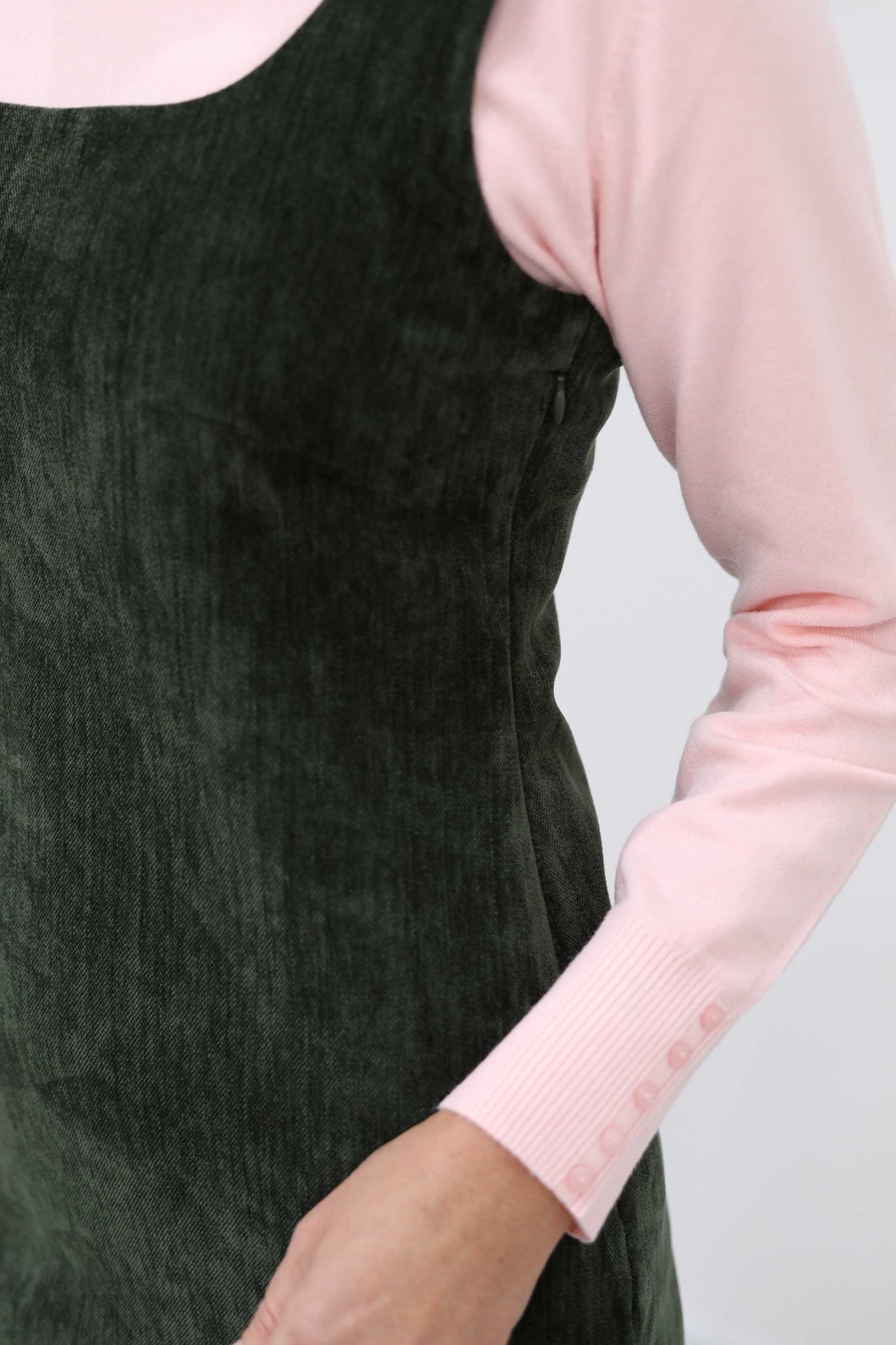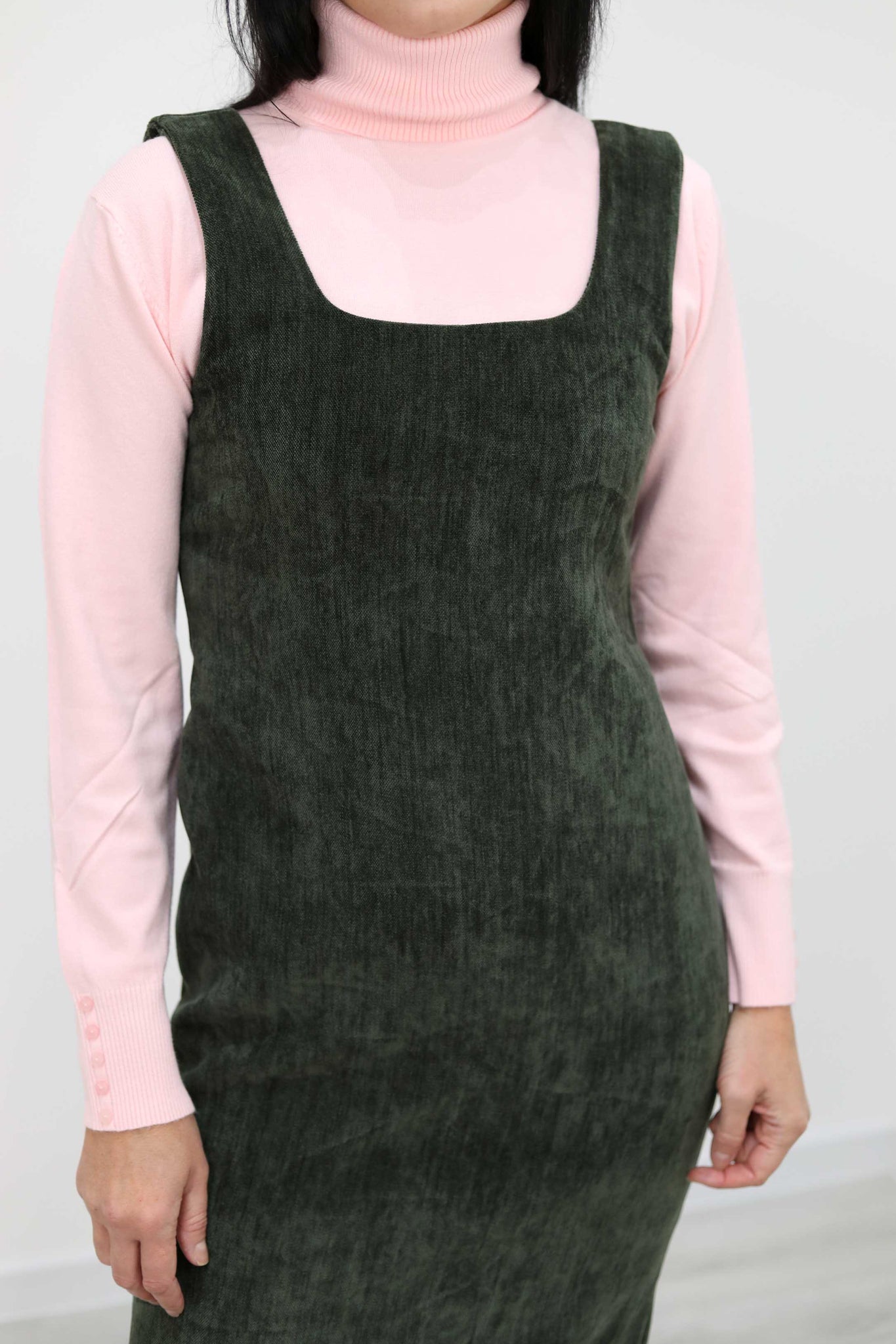 Abito midi smanicato in velluto a coste. Effetto avvitato, chiusura laterale con zip.