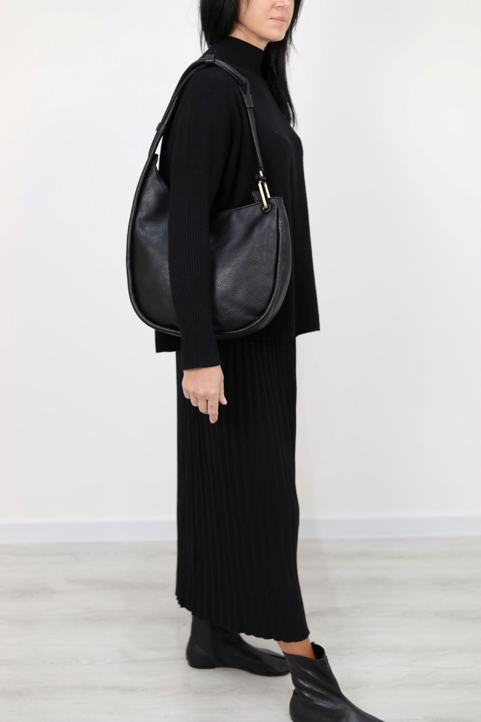 Borsa a spalla in ecopelle, leggera e capiente. Manico regolabile con dettaglio dorato e chiusura con zip. Perfetta per l’uso quotidiano.