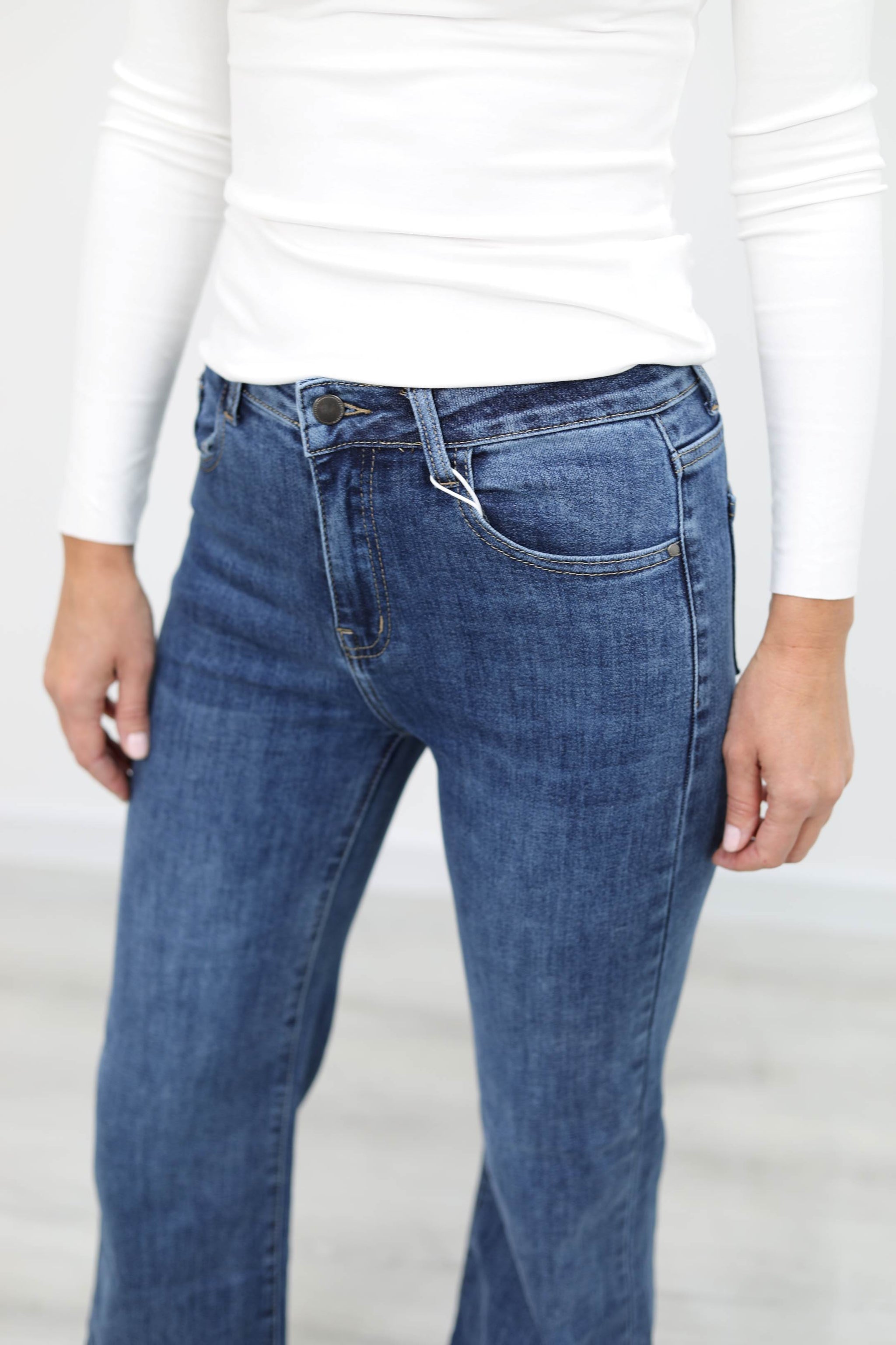 Jeans elasticizzato a gamba dritta. Modello cinque tasche, presenta l'orlo sul fondo.
