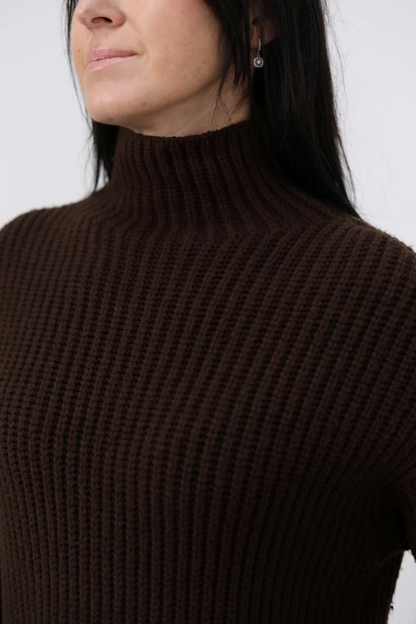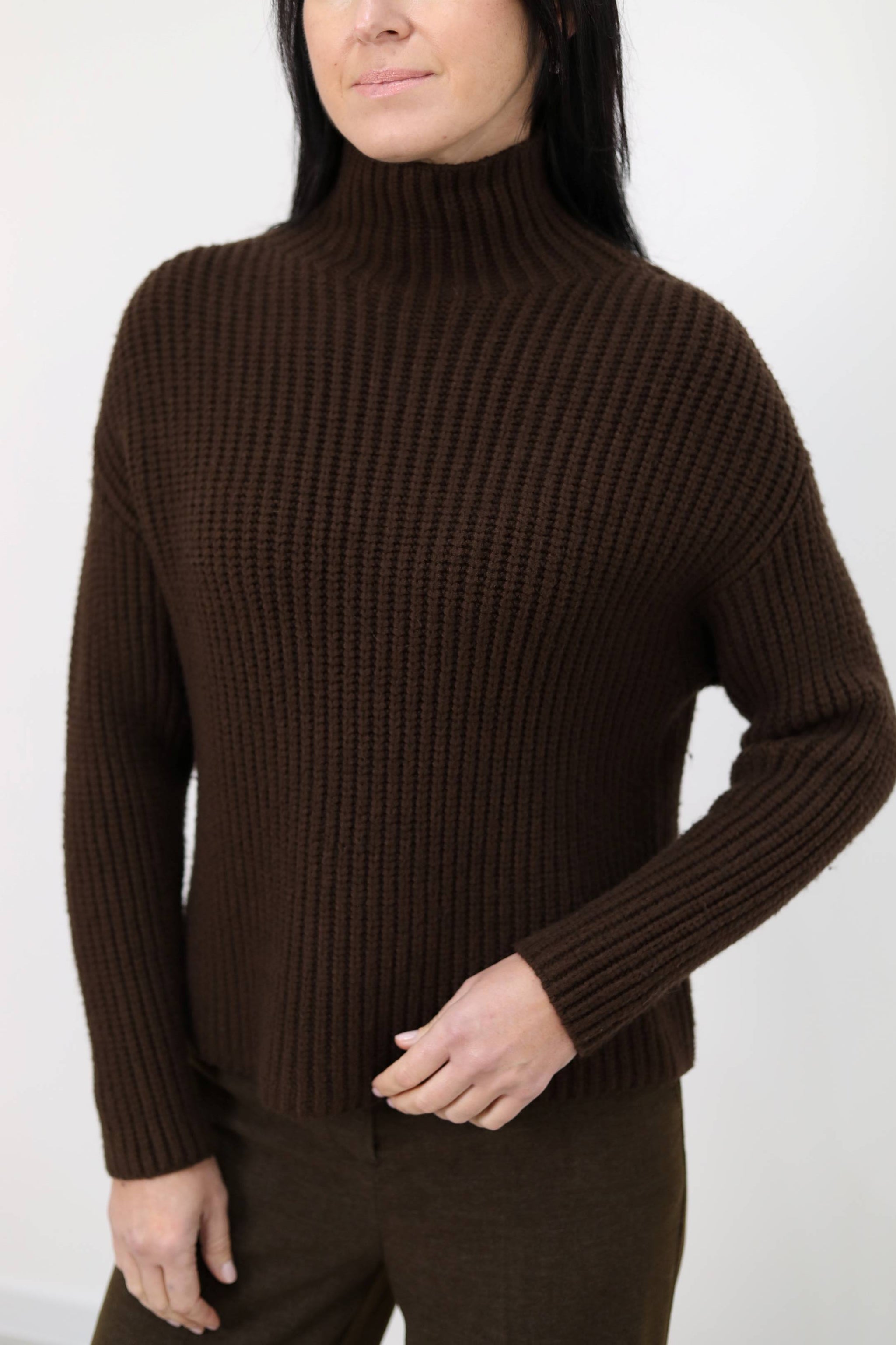 Pullover a collo alto in maglia a coste. Vestibilità morbida.